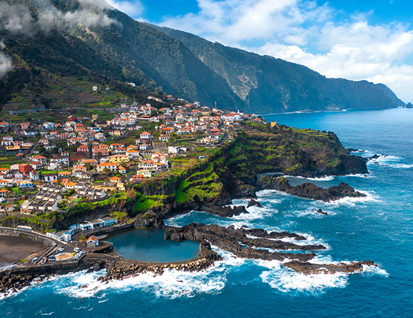 Fahrt in den Westen der Insel. Der vom früheren britischen Premierminister Winston Churchill auf Leinwand verewigte Fischerort Câmara de Lobos ist die erste Station. Weiter dann zum Fotostopp am 590 m hohen Cabo Girão. An dieser höchsten Steilküste Europas bricht das Land fast senkrecht zum Meer hin ab! Der Küstenlinie folgend gelangen Sie zunächst über Ribeira Brava und anschließend dem mehr als 1000 m hohen Encumeada-Pass nach São Vicente an die Nordküste. Angekommen in Seixal, einem ruhigen Küstendorf mit dunklem Kiesstrand und schönen Wasserfällen, erwartet Sie eine Weinverkostung, begleitet von regionalen und nationalen Köstlichkeiten. Die steilen Hänge um Seixal sind bekannt für ihre ausgezeichneten Sercial-Trauben. Als Abschluss des Tages machen Sie noch Halt in Porto Moniz, einem Städtchen mit natürlichen Meeresschwimmbecken aus bizarrer schwarzer Lava. Zeit zur freien Verfügung, um die Bademöglichkeiten individuell zu nutzen. Von hier geht es hoch hinauf, quer durch das Hochmoor Paul da Serra und wieder bergab zu Ihrem Hotel. Abendessen und Nächtigung.