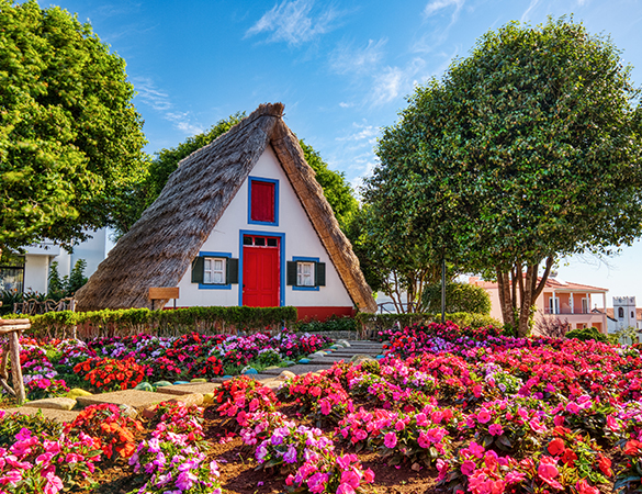 Fahrt über den Poiso-Pass Richtung Pico do Areeiro, der dritthöchste Berg von Madeira. Weiterfahrt ins Naturschutzgebiet Ribeiro Frio, wo die Vegetation der Insel am ursprünglichsten ist. Hier wachsen Mahagoni-, Lorbeer- und Maiblütenbäume, Baumheide und andere Pflanzen, die schon die Entdecker der Insel vorfanden. Eine kurze Wanderung (nur bei Schönwetter) führt zum Aussichtspunkt Os Balcoes (Gehzeit insgesamt ca. 1 Stunde). Mittagspause in Santana, dem Dorf mit den typischen kleinen Häusern, deren spitze Strohdächer zu beiden Seiten bis an den Boden reichen. Vorbei am „Adlerfelsen“ Penha D´Aguia geht es nach Porto da Cruz, einem Zentrum des Zuckerrohranbaus zur Südküste. Hier liegt Machico, der älteste Ort der Insel, wo auch die Entdecker Madeiras erstmals an Land gingen. Immer der Küstenlinie folgend erreichen Sie dann wieder Funchal.